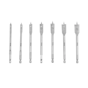 - High-carbon steel wood flat drill bit set with 13 sizes (6–35mm), precision tips, and hex shank for fast, clean drilling in wood and plasterboard.